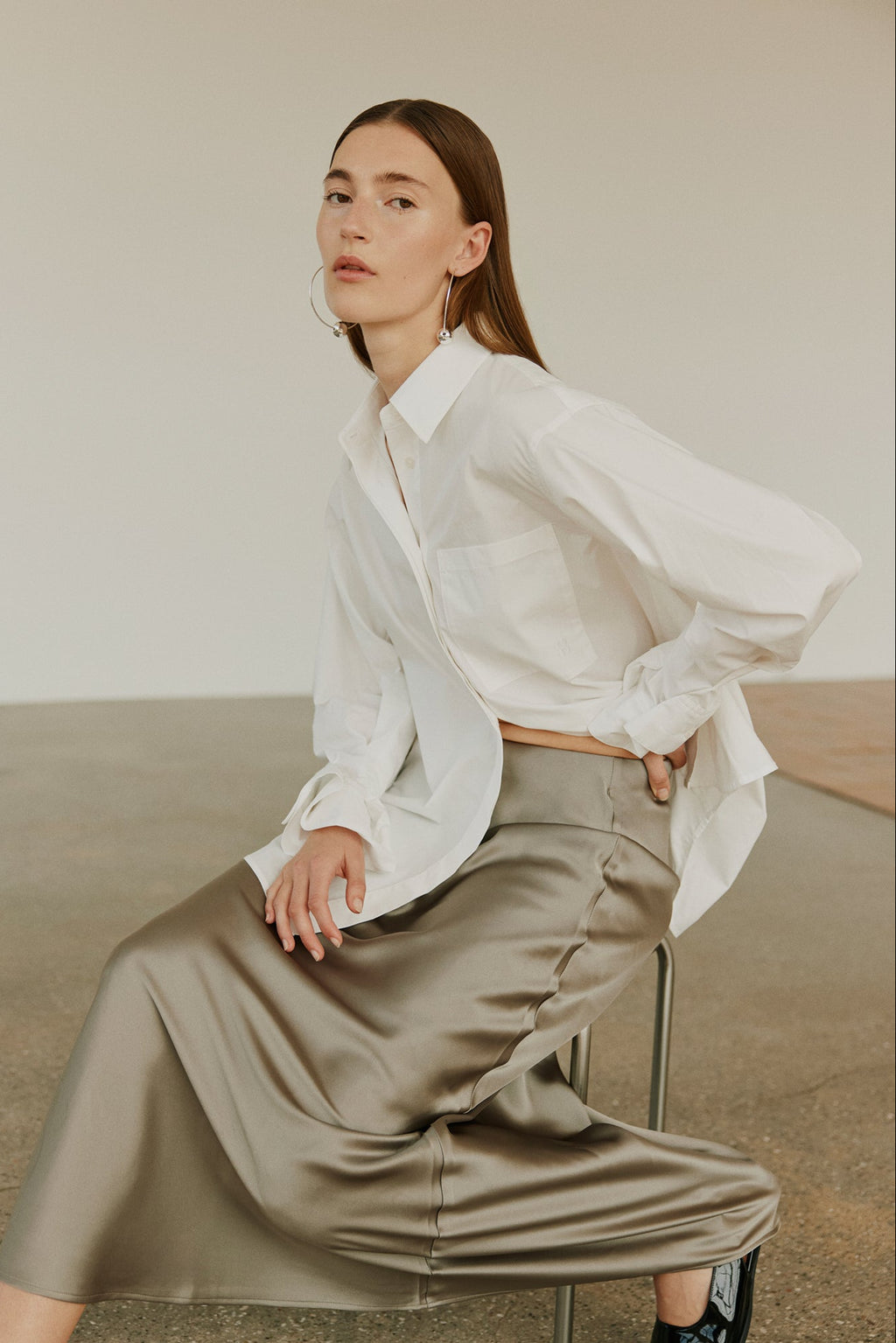 Balancing precision and softness, this piece moves seamlessly between elevated everyday wear and more formal styling. Wear it loosely over tailored trousers for quiet confidence, or buttoned to the top for a sharper, more defined look. Timeless yet distinctly modern, it’s a wardrobe foundation designed to be worn on repeat.