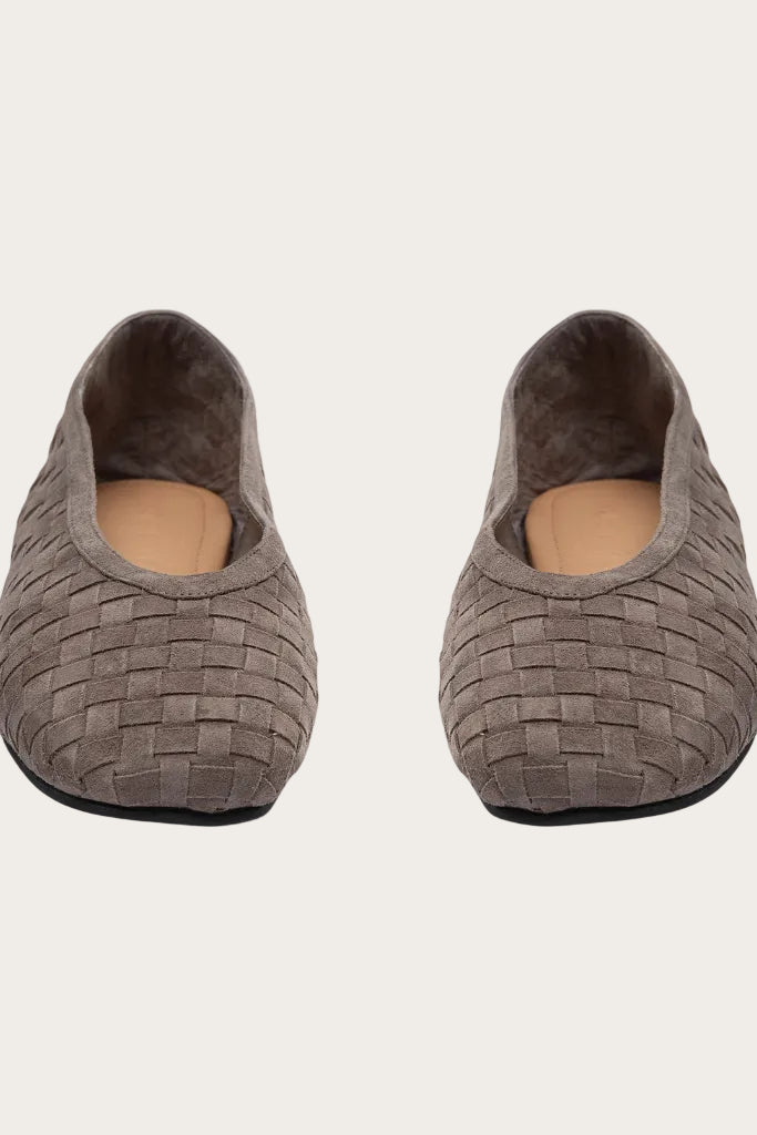 Timeless with a modern twist, these ballerina flats are crafted from 100% leather with a soft suede-look finish, offering both comfort and understated elegance. The braided structure adds refined texture, while the square toe gives a contemporary edge to the classic silhouette. Designed as an easy slip-on style, they’re perfect for effortless everyday wear.