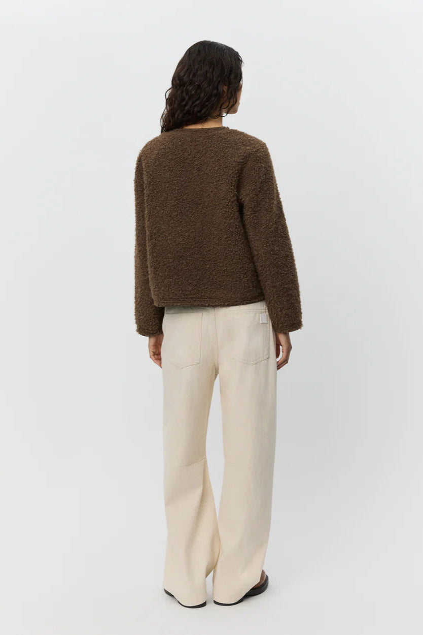 Step out in effortless style with this chic short jacket, designed to keep you warm and on-trend. Crafted in soft faux fur with sleek PU edges, it brings a touch of luxury and modern edge to your look. The round neck adds a clean, classic finish, while the two chest pockets with button details give it a casual, utilitarian vibe. Perfect for wearing outside on cool days, this jacket fastens with front buttons for easy wear. Pair it with jeans and boots for a laid-back weekend look or layer it over a dress for a cozy, elevated style.