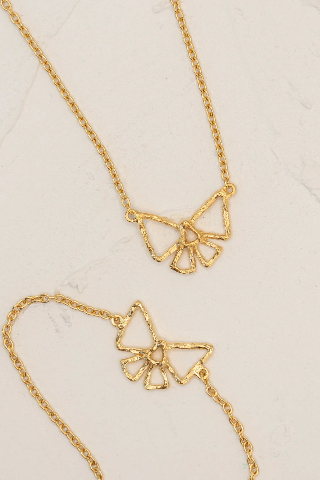 A gorgeous, simple floating bow necklace. Sharpened edges and a hammered metal finish give the bow a gorgeous sparkle.