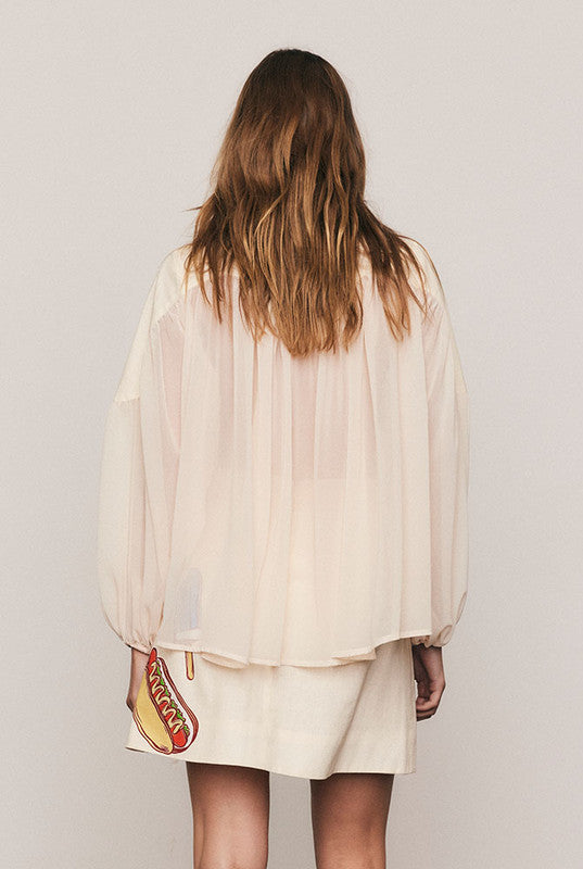 Billowing sleeves bring soft volume, while the fluid silhouette drapes beautifully for an elevated yet easy feel. Designed to move with you from relaxed daytime moments to evening occasions, it’s a versatile piece with distinctive charm. Pair it with the coordinating skirt for a look that feels both considered and contemporary.