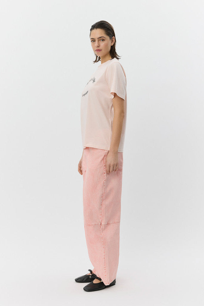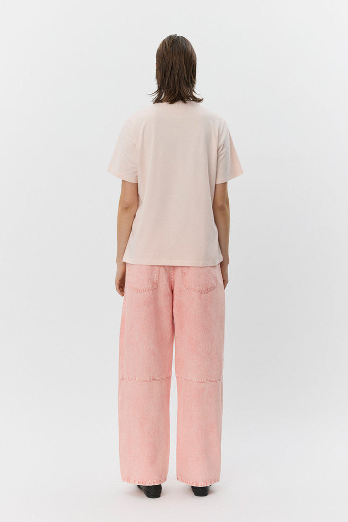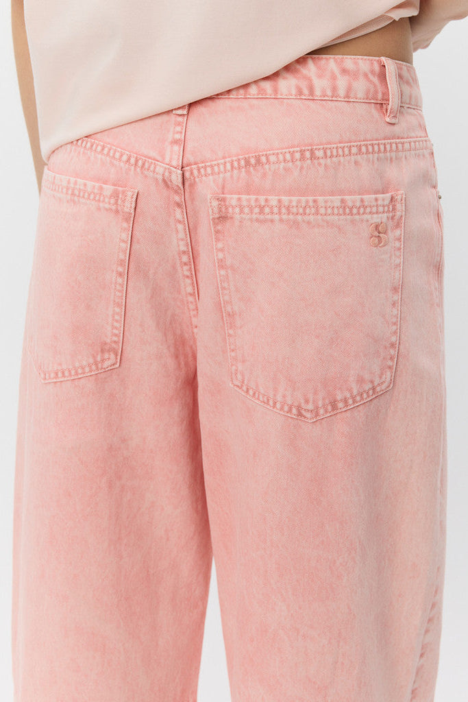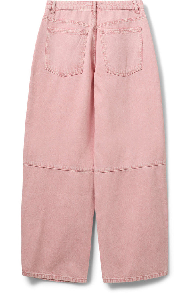 Designed for effortless everyday style, these light pink tapered jeans offer a modern silhouette with a soft, feminine edge. Cut with a relaxed fit through the hips and a gently narrowing leg, they create a flattering shape that feels both current and comfortable. The delicate pink wash adds a subtle statement while remaining easy to style across seasons.
