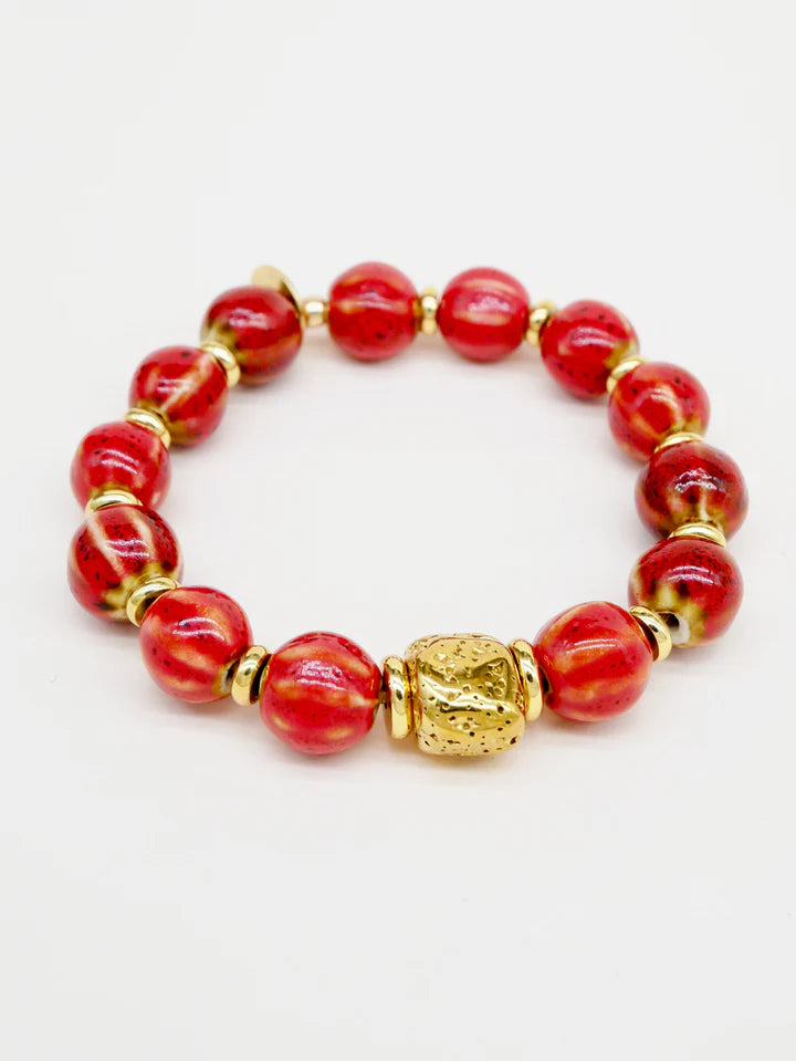 Ceramic Scrunchie Bracelet in Brick Red Moon