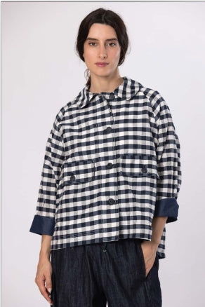 An effortless layering piece with timeless appeal. This navy and white check shirt is designed with a relaxed, easy silhouette that feels light and breathable for the spring and summer seasons. Perfect for styling over a simple top or wearing on its own, it brings a laid-back charm to everyday dressing while remaining polished and versatile.
