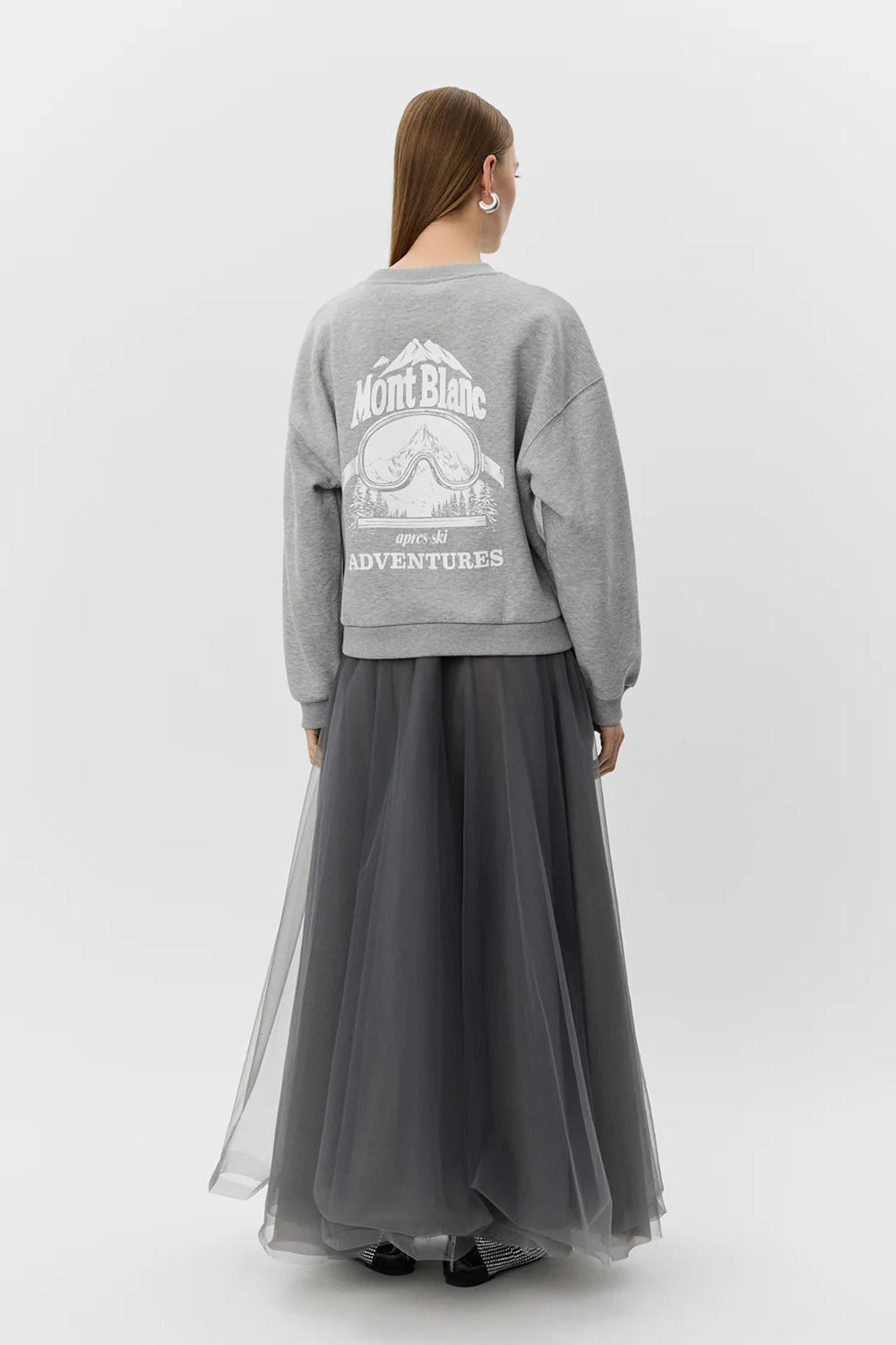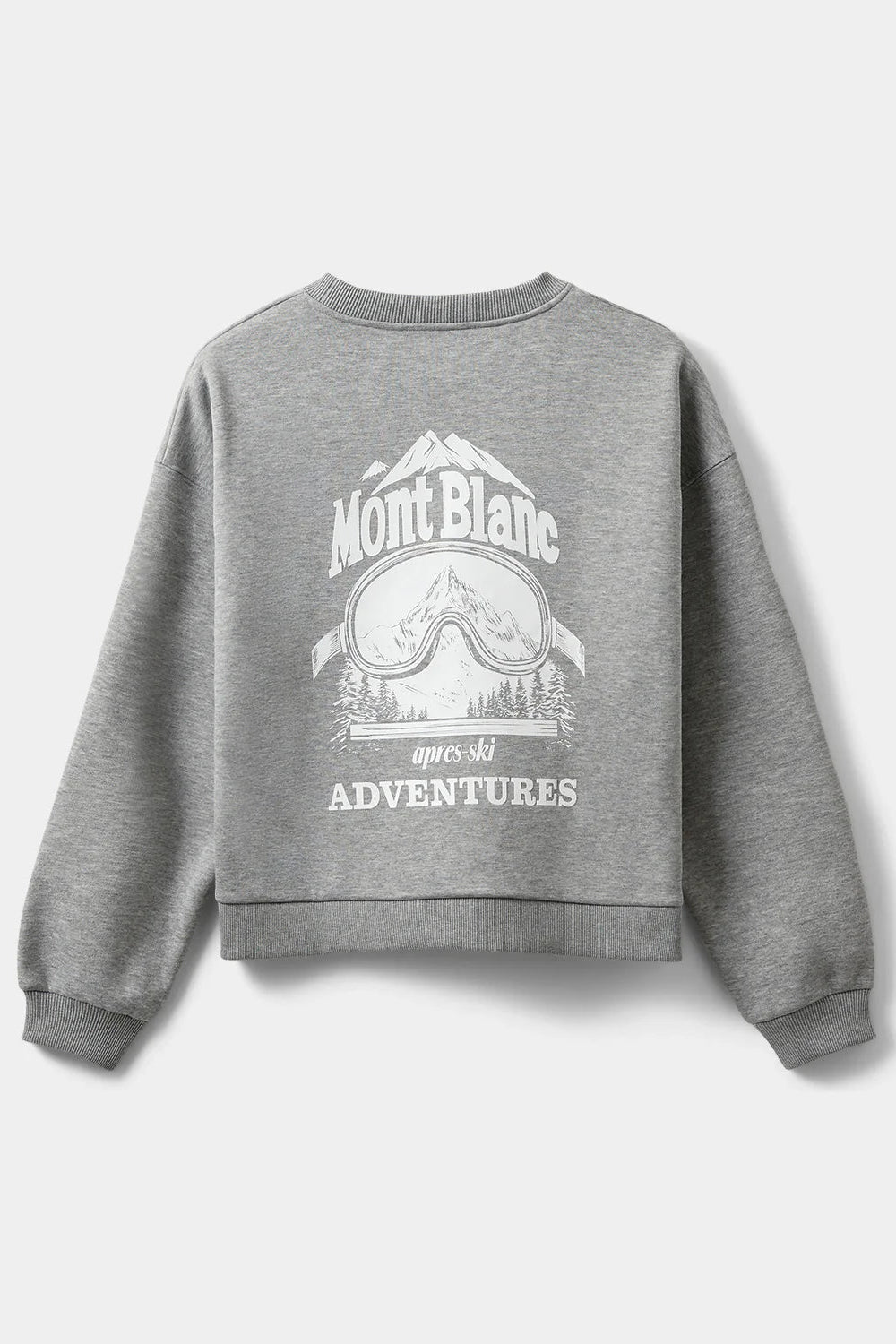 A modern essential with a playful twist. This crew neck grey sweatshirt is crafted for all-day comfort and effortless style. The clean silhouette keeps it versatile, while the bold “Après Ski Club” slogan printed across the back brings a statement finish that nods to alpine leisure and après-ski culture. Pair it with denim or tailored trousers for a relaxed yet elevated look that transitions seamlessly from the slopes to the city.