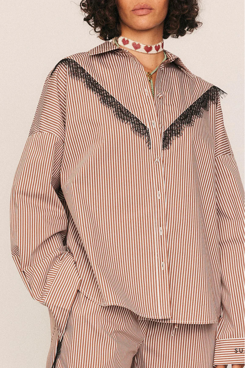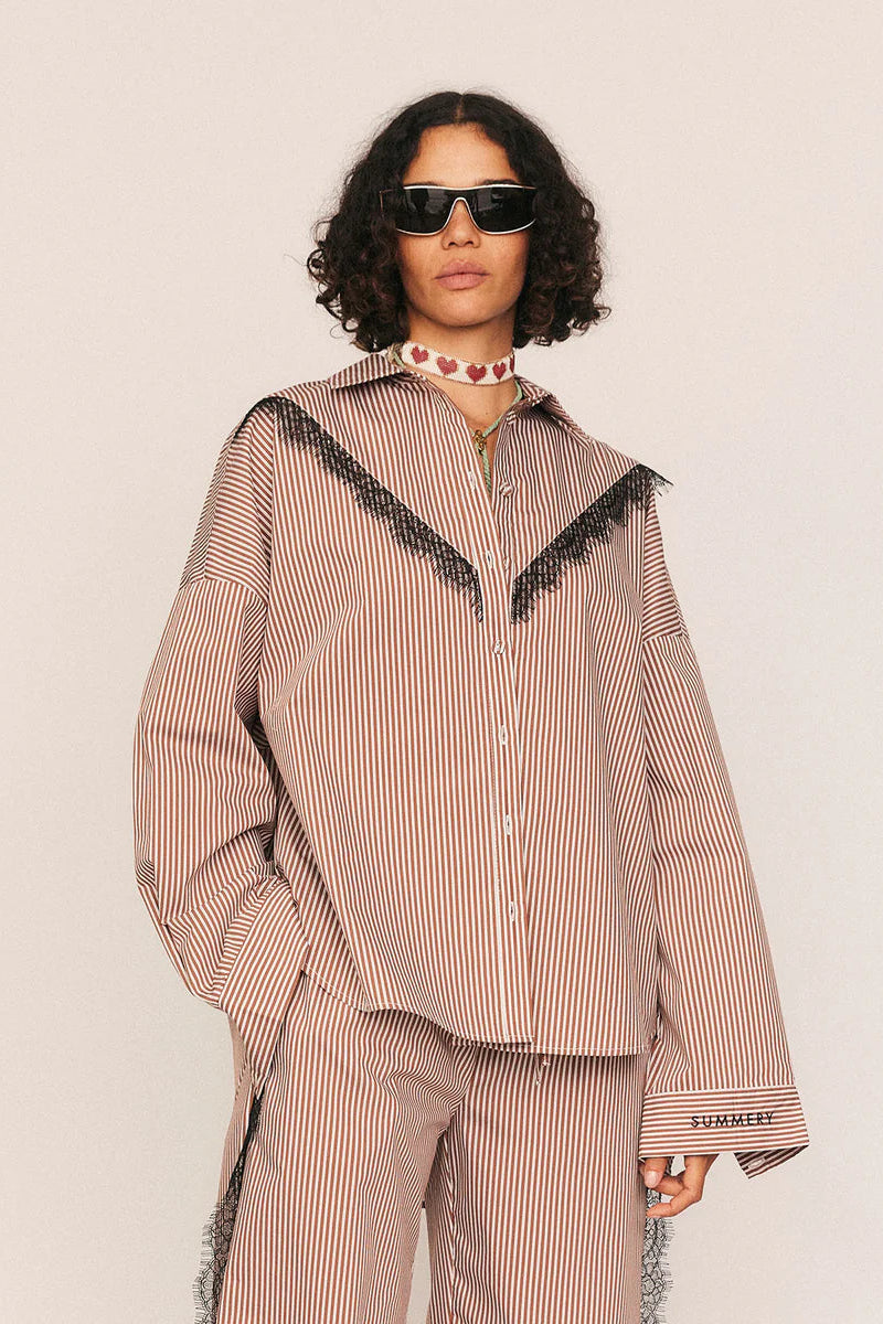 Frieda Lace Striped Shirt in Brown