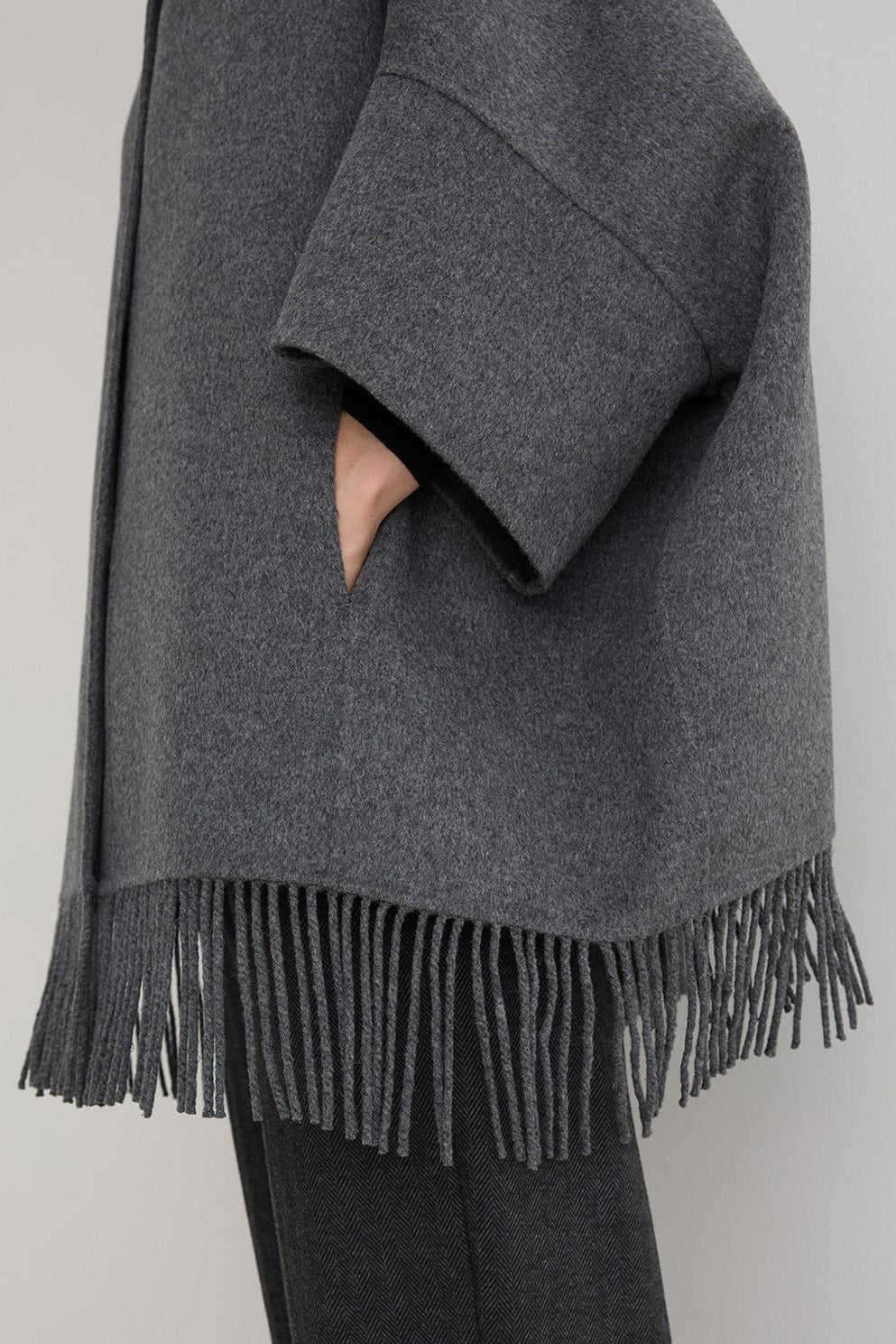 Fringe Wool Coat in Grey