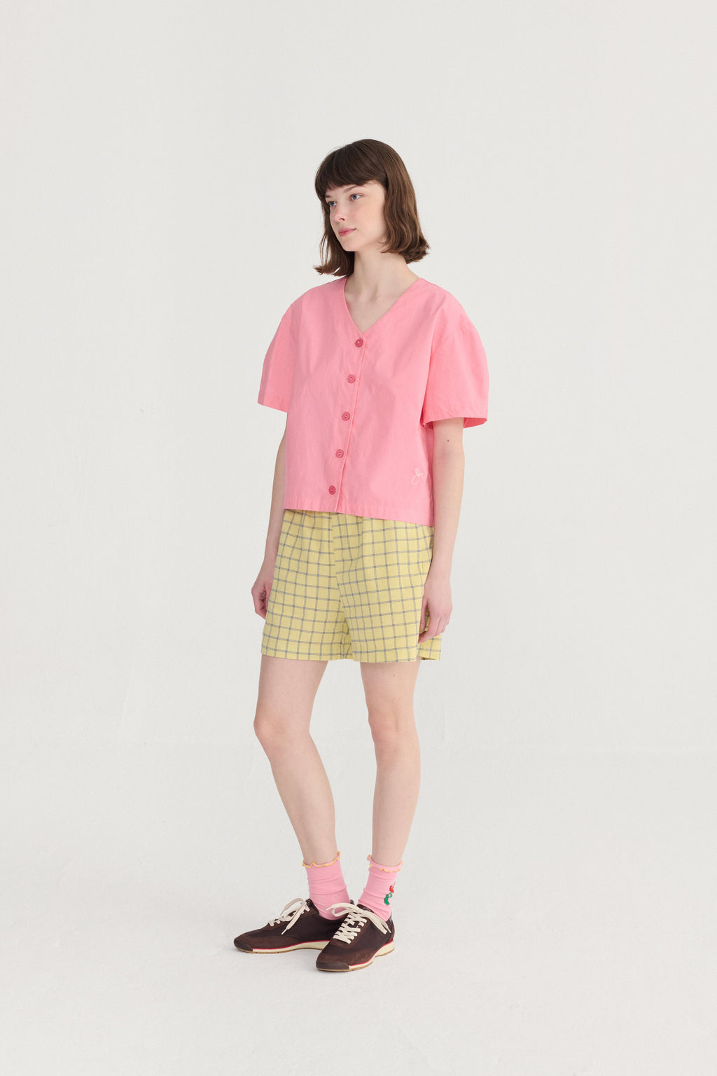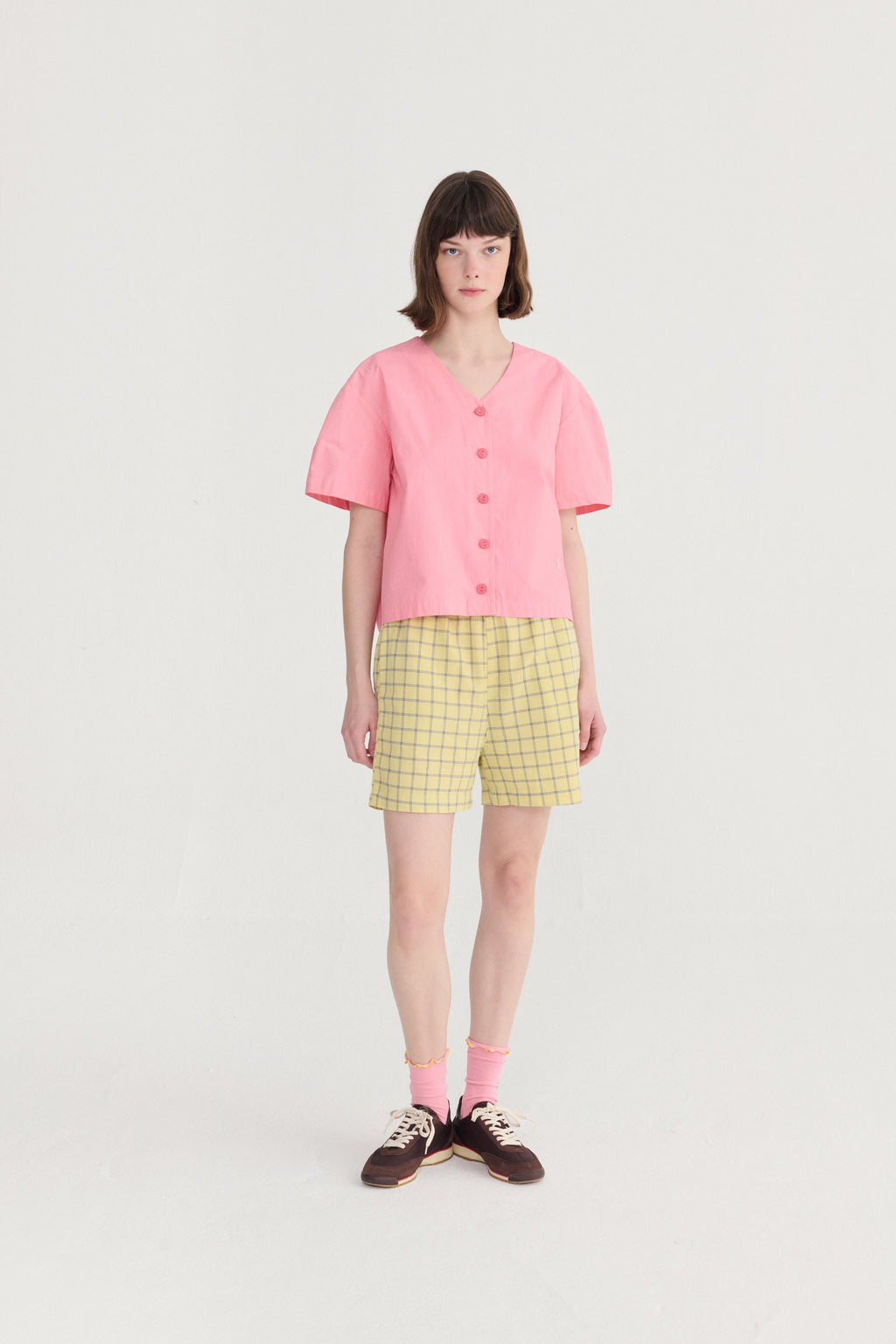Refresh your wardrobe with this effortlessly chic short-sleeve blouse, designed with a flattering V neckline and crafted from lightweight paper-touch fabric. The crisp, airy texture gives it a clean, modern look while keeping you cool and comfortable throughout the day. Easy to style and endlessly versatile, this blouse pairs perfectly with tailored trousers for work or denim for a relaxed weekend outfit.
