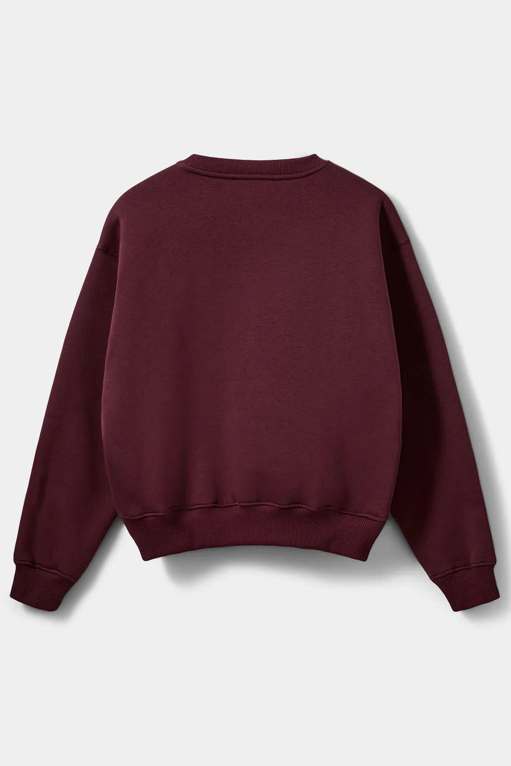A modern essential crafted for style and ease. The deep burgundy hue and chest logo elevate this oversized sweatshirt, while the dropped shoulders create a relaxed silhouette.— the perfect blend of comfort and statement design.