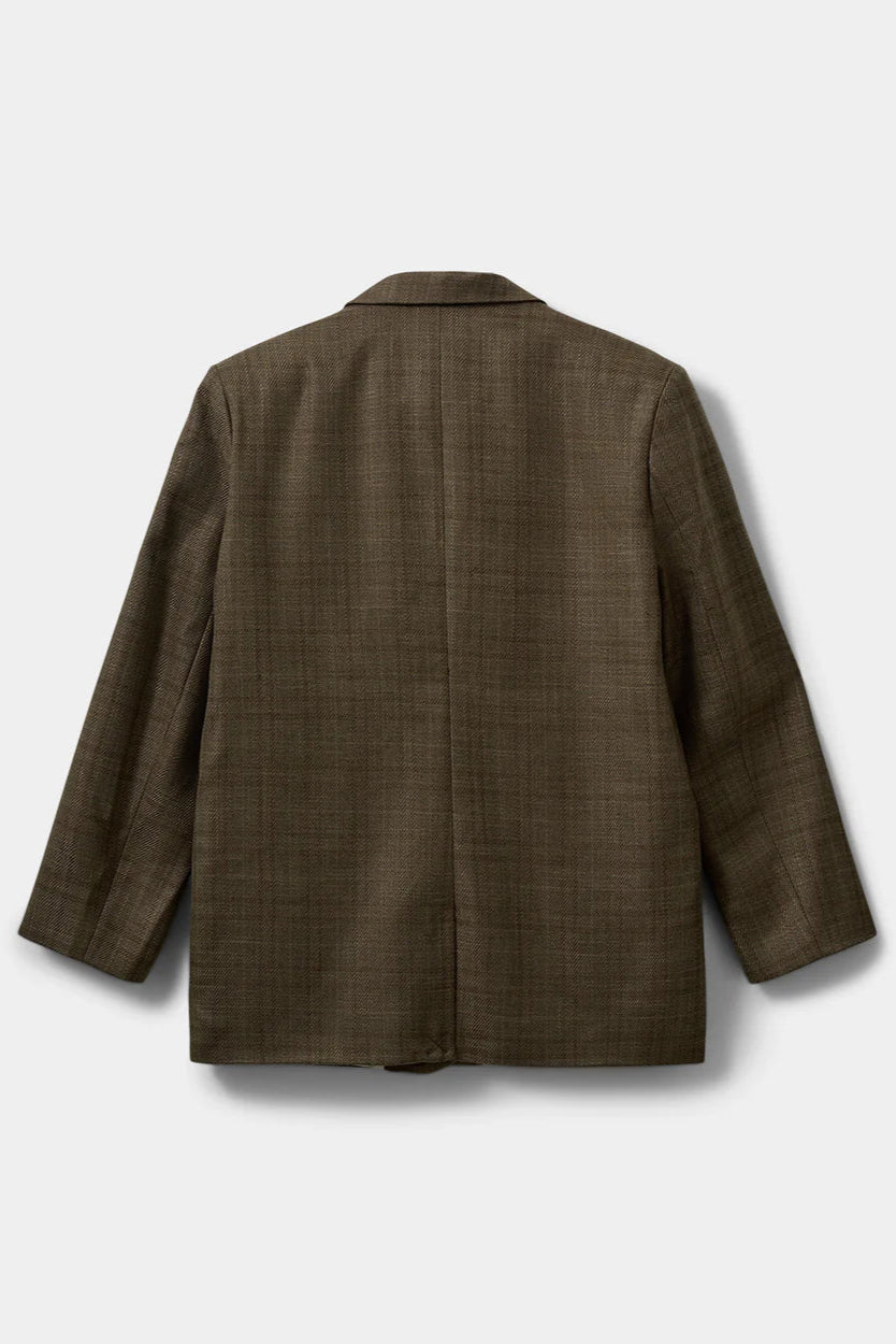 Elevate your wardrobe with this timeless checkered blazer in brownish shades, a perfect blend of classic tailoring and modern ease. Cut in a slightly oversized fit, it offers a relaxed yet refined silhouette. Designed with notch lapels, a two-button closure, and subtle front pockets with a decorative chest pocket, it balances functionality with style. The interior lining ensures comfort and a smooth finish, making it ideal for layering over blouses, knits, or even casual tees. A versatile piece that transitions effortlessly from office to off-duty.