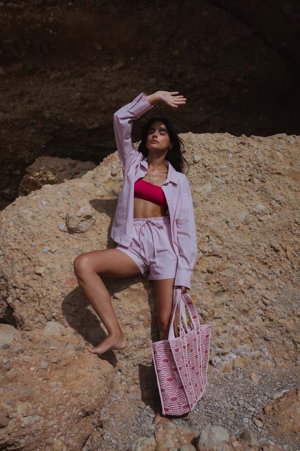 Pretty meets practical. This pink tote bag is adorned with delicate floral embroidery, adding a touch of artisanal charm to an everyday essential. Spacious and versatile, it’s perfect for carrying your daily essentials while making a subtle, feminine statement.
