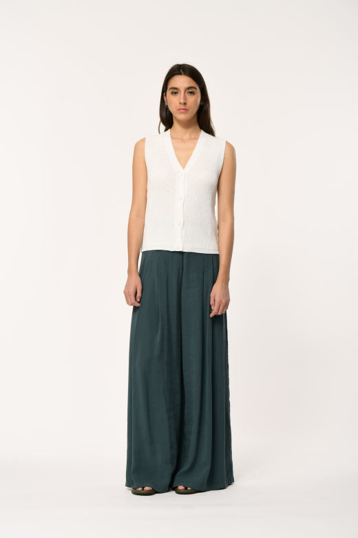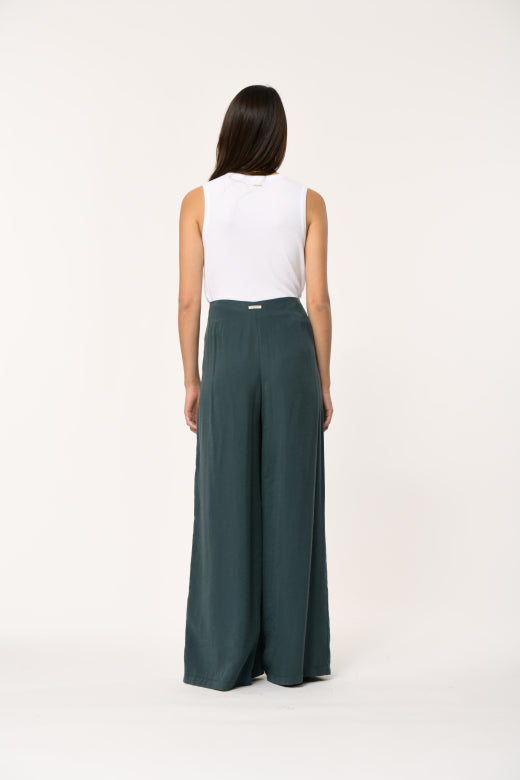 Effortlessly chic and incredibly flattering, these wide-leg culotte pants are crafted in soft, fluid modal for a graceful drape. The high waist is defined by stitched inverted pleats at the front and darts at the back, creating a tailored silhouette that flatters every figure. The very wide legs move with ease and elegance, while an invisible side zipper ensures a clean, seamless finish. Perfect for dressing up or keeping it casual, these culottes combine modern sophistication with ultimate comfort.