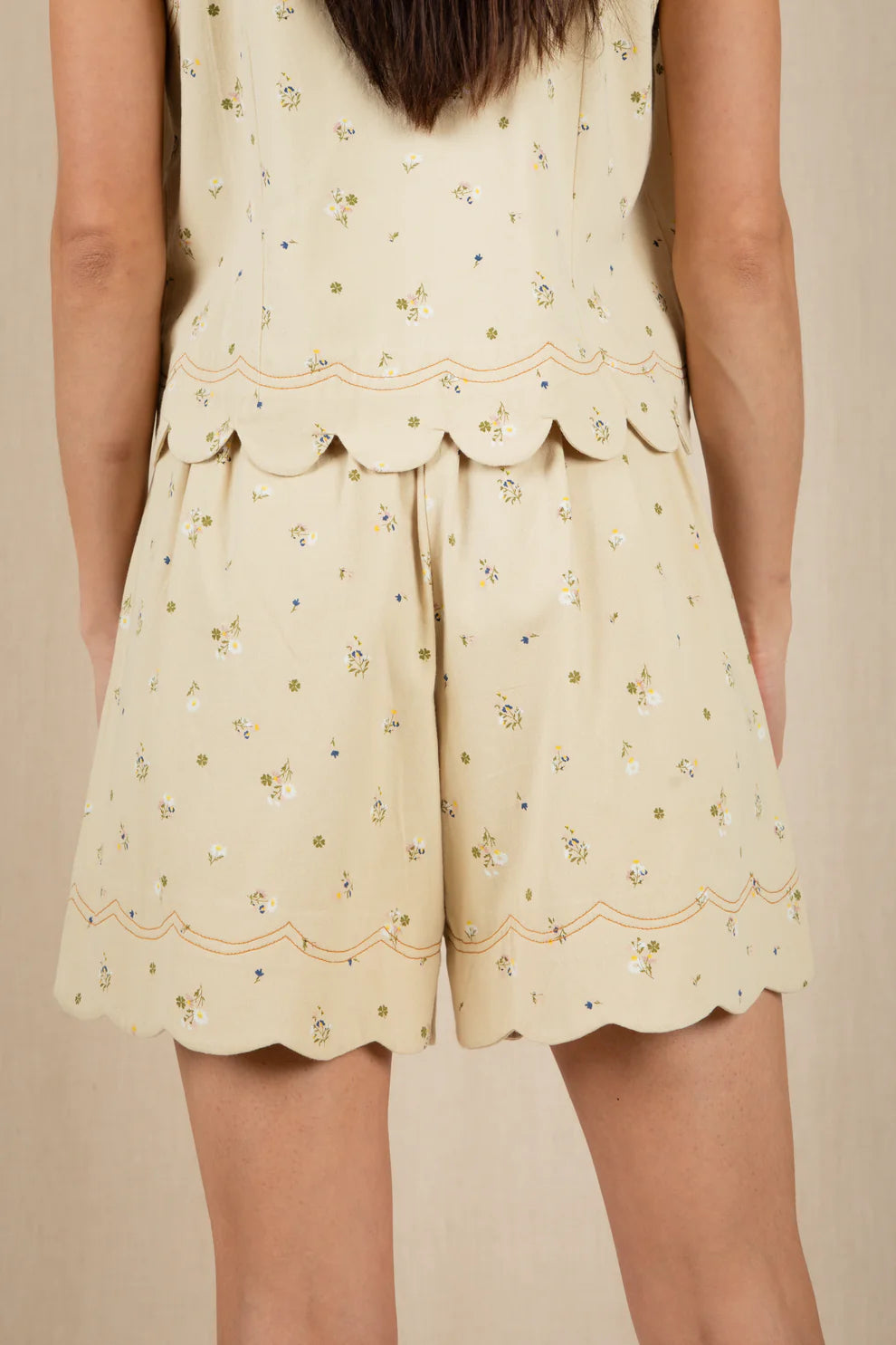 Fresh, feminine, and made for sun-filled days, these shorts capture the essence of spring in full bloom. Set against a radiant yellow base with a delicate floral print, they bring a joyful, garden-inspired charm to warm-weather dressing.