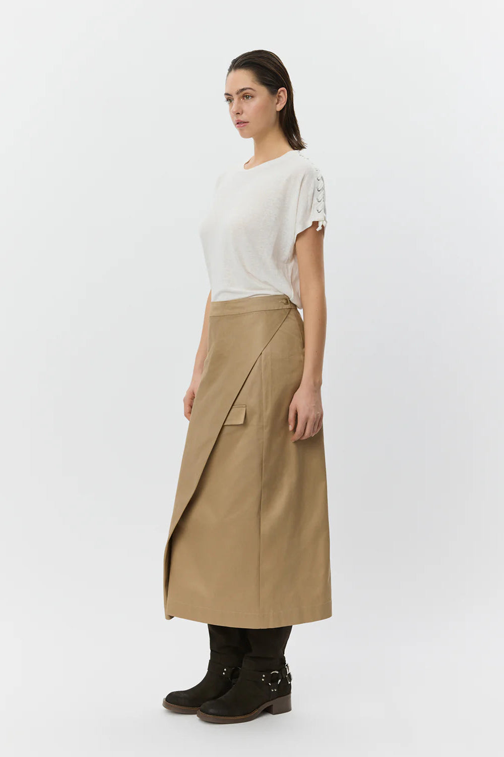 Lace Up T-shirt in Off White