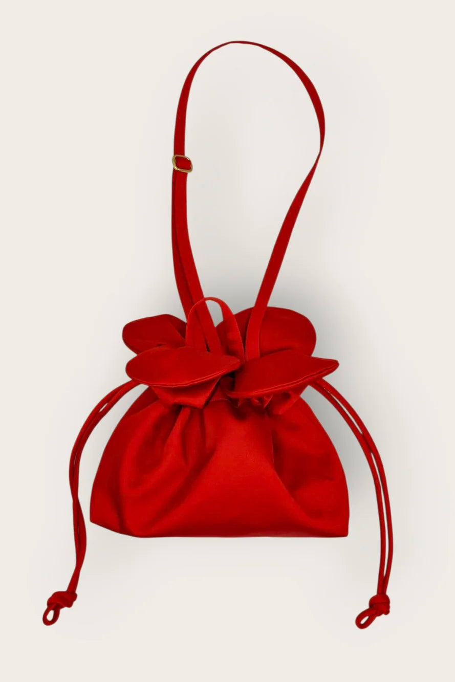 Petal Cinch Scarlet Satin Bag