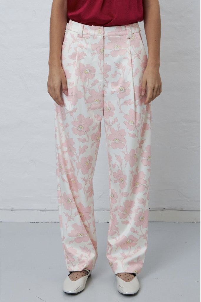 Romantic florals meet modern tailoring in these statement trousers. Set against a soft, light base, the delicate pink floral print brings a fresh, feminine energy that feels perfectly suited to spring and summer styling.