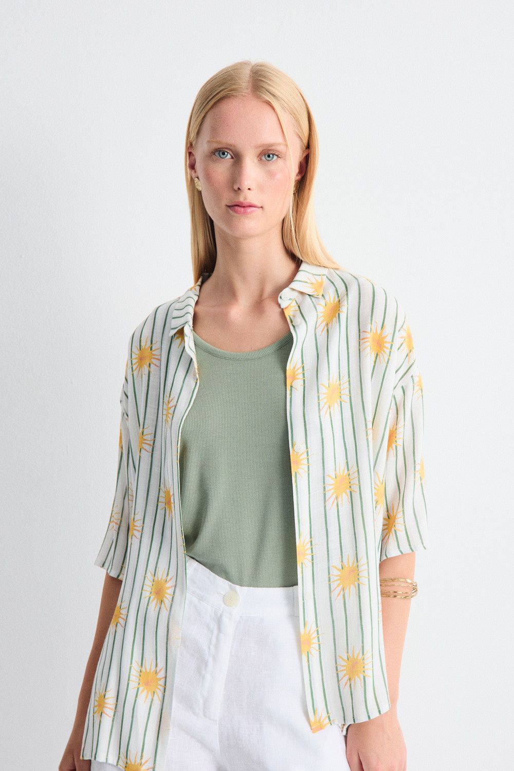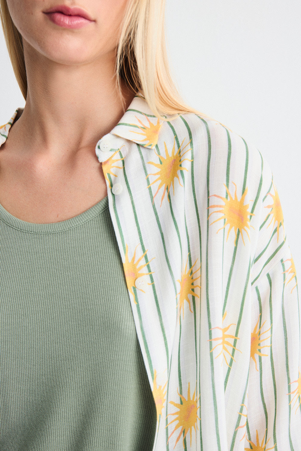 Light, playful and full of sunshine charm. This sky striped shirt is finished with golden sun motifs and cut in a relaxed, easy silhouette.