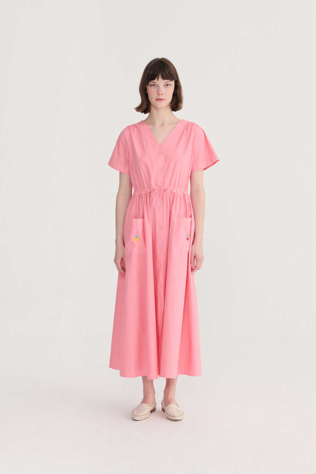 Effortless, breezy, and perfectly suited for summer, this V-neck shirt-style dress is your go-to for sunny days and relaxed adventures. Designed with a flattering cinched waist and functional pockets, it combines comfort with subtle shaping. The long-length silhouette makes it ideal for strolling along the beach, exploring new spots, or pairing with sandals or trainers for a casual, chic look. Lightweight and easy to wear, this dress transitions seamlessly from day to evening, keeping your summer style fresh and effortless.