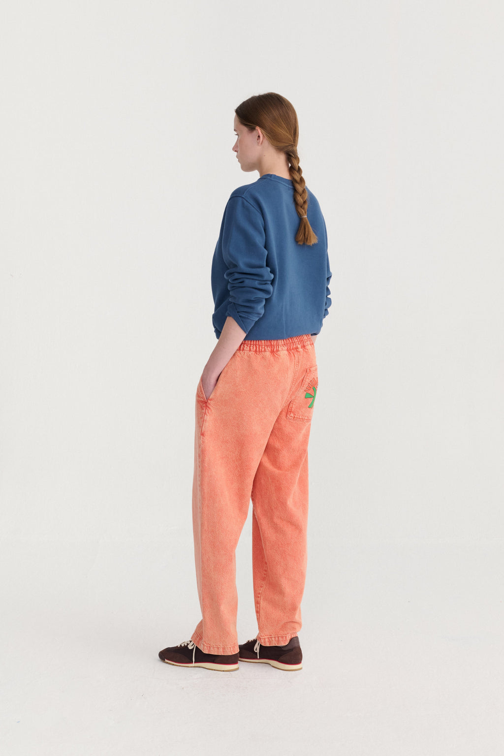 Inject color and personality into your denim collection with these relaxed-fit jeans in a warm burnt orange shade. Designed for comfort and style, they feature an elastic waistband for an effortless, easy fit and a casual silhouette perfect for everyday wear. A delicate floral motif on the back pocket adds a playful, feminine touch, turning classic denim into a statement piece. Pair with tees, blouses, or lightweight knits for a relaxed, stylish look that’s ready for any casual outing.